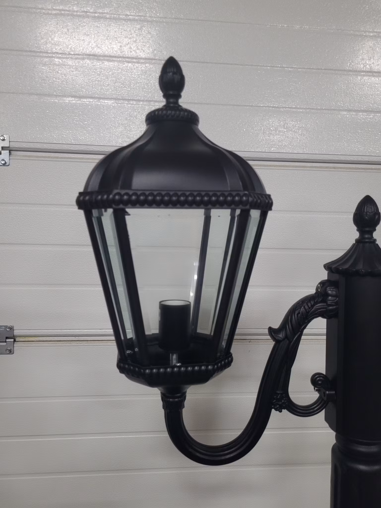 Hängande vägglampa, lampa med stolpfäste, lampor på belysningsstolpe.